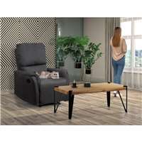 Konferenční stolek s rozměry 110x60x42 cm kombinuje desku z MDF s dekorem divokého dubu a pevné nohy z černě matného kovu. Deska nabízí přírodní hnědý odstín s výraznou strukturou dřeva, která dodává stolku autentický vzhled. Kovové nohy jsou navrženy v moderním geometrickém tvaru, který zajišťuje stabilitu a zároveň přispívá k industriálnímu designu. Celkové provedení je navrženo pro dlouhou životnost a snadnou údržbu, což činí stolek vhodným doplňkem do moderních obývacích pokojů či kanceláří. Stolek není rozkládací, jeho kompaktní rozměry umožňují praktické využití i v menších prostorách. Barva primární: Hnědá Demontované: Ano Hloubka (cm): 60.00 Karton 1 (cm): 117x68x15 Materiál desky: MDF Materiál konstrukce: Kov Materiál nohou: Kov Počet balení: 1.00 Styl: Industriální Šířka (cm): 110.00 Tvar desky: Obdélníkový Typ podnože: 4 nohy Výška (cm): 44.00 Barva nohou: Černá Dekor primární: Divoký dub Materiál: MDF Skupina zboží: Konferenční stolek Nosnost (kg): 20.00 Rozklad: Ne Dekor desky: Divoký dub Objem celkem (m3): 0.12 Hmotnost - netto (kg): 16.00 Hmotnost - brutto (kg): 17.00 Počet kusů v kartonu: 1.00 Tloušťka desky (cm): 5.00 Montáž: Vyžaduje montáž Barva desky: Hnědá Místnost: Obývací pokoj Rozměry: 110 x 60 x 44 cm Hmotnost:16,5 kg