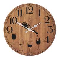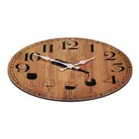 Tyto nástěnné hodiny o průměru 34 cm, vyrobené z MDF desky, mají unikátní design, kde jsou čísla ve spodní části ciferníku nahrazena sklenicemi vína. Budou tak skvělým dárkem pro milovníky vína, kombinující přírodní barvu dřeva s jeho kresbou a černá čísla, která příjemně kontrastují se zbytkem povrchu hodin. Počet baterií: 1.00 Barva primární: Hnědá Sezóna: Celorok Druh ciferníku: Klasický Šířka (cm): 34.00 Výška (cm): 34.00 Průměr (cm): 34.00 Hloubka (cm): 4.00 Hmotnost (g): 560.00 Tvar: Kruhový Typ baterie: AA Baterie součástí balení: Ne Materiál: MDF Počet kusů v boxu: 1.00 Počet kusů v kartonu: 12.00 Rozměry: cm Hmotnost:0,55 kg