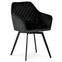 Díky svému dokonalému designu je tato židle v industriálním stylu nezaměnitelná a zároveň velmi pohodlná. Skořepina sedáku a opěradla má potah z kvalitní látky ve vesmírně černém matném sametu. Polstrování je z PU pěny. Velmi dekorativním prvkem je výrazné kosočtvercové prošití vnitřních ploch v barvě potahu a paspule po obvodu celé skořepiny. Vybraná látka se také velmi dobře čistí. Stabilitu židle zajišťují čtyři kónické kovové nohy obdélníkového průřezu s kvalitním práškovým nástřikem v černé matné barvě. Ukončené jsou černými plastovými kluzáky, zabraňující poškození tvrdých povrchů podlah. Tato provedení produkují z tohoto modelu židle skvělou volbu pro zařízení obývacích či jídelních, ale také zasedacích místností. Nosnost židle je 110 kg. Bonusem této židle je otočný a vratným mechanismus, který umožňuje otáčení o 90° doleva a o 90° doprava a zároveň vždy vrátí sedák do původní polohy. Díky němu žiidle zůstanou vždy srovnané u stolu. Styl: Industriální Šířka (cm): 57.00 Hloubka (cm): 61.00 Výška (cm): 84.00 Barva nohou: Černá Dekor primární: Samet Nosnost (kg): 120.00 Typ podnože: 4 nohy Demontované: Ano Počet balení: 1.00 Materiál nohou: Kov Barva primární: Černá Materiál: Látka Skupina zboží: Jídelní židle Výška sedu (cm): 52.00 Hloubka sedu (cm): 45.00 Montáž: Vyžaduje montáž Hmotnost - netto (kg): 8.25 Hmotnost - brutto (kg): 9.00 Područky: Ano Karton 1 (cm): 69x58x52 Počet kusů v kartonu: 2.00 Objem celkem (m3): 0.21 Šířka sedu (cm): 42.00 Výška područek (cm): 65 Materiál výplně: PU pěna Druh potahové látky: Sametová látka Průřez nohy: Obdélníkový Funkce: Otočná L/P 90° vratný mechanismus Místnost: Jídelna Highlight 1: Elegantní prošití Hmotnost (kg): 120.00 Otočná: Ano Číslo dekoru: CDBL-19 BLACK Rozměry: 56 x 57 x 85 x 50 cm Hmotnost:8,5 kg