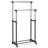 Dvojramenný stojan na šaty v černém provedení kombinuje pevný kovový rám s plastovými prvky pro stabilitu a snadnou manipulaci. Výškově nastavitelná horní tyč umožňuje přizpůsobení podle potřeby, což zajišťuje optimální využití prostoru a pohodlné zavěšení oděvů různých délek. Spodní odkladač nabízí praktické místo pro uložení bot nebo dalších doplňků. Stojan je vybaven kolečky, která usnadňují přesun v interiéru bez poškození podlahy. Kompaktní design a kvalitní materiály zaručují dlouhodobé užívání v domácnostech i komerčních prostorách. Karton 1 (cm): 86x23x8 Nosnost (kg): 10.00 Počet balení: 1.00 Styl: Moderní Výška rozsah (cm): 95-170 Výškově nastavitelná: Ano Hmotnost - netto (kg): 3.50 Hmotnost - brutto (kg): 4.00 Objem celkem (m3): 0.02 Počet kusů v kartonu: 1.00 Výška (cm): 170.00 Hloubka (cm): 45.00 Demontované: Ano Materiál: Kov Šířka (cm): 85.00 Skupina zboží: Stojan na šaty Barva primární: Černá Rozměry: 85x45x95-170 cm Hmotnost:4 kg