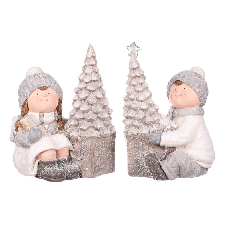 Překrásná vánoční dekorace z magnéziové keramiky v podobě dětí před svítícím stromečkem, přináší radost a potěšení. Naše výjimečná dekorace zachycuje sedící děti v teplém oblečení, jak se radostně dívají na osvětlený vánoční stromeček. Je zde zachycen kouzelný moment očekávání z toho, co jim Ježíšek ve skutečnosti nadělil. LED osvětlení vnese do prostoru i krásný světelný element. Vytvoříte si tak hravě a jednoduše úchvatnou sváteční atmosféru, která vás bude bavit. Tyto figurky zachycují nejen krásu zimního období, ale také radostné pocity spojené s tímto magickým obdobím. Výška (cm): 39.00 Šířka (cm): 31.00 Hloubka (cm): 22.00 Alternativní sezóna: Zima Funkce: LED osvětlení Barva primární: Vícebarevná Materiál: Magnesium Mix druhů: Ano Sezóna: Vánoce Počet baterií: 2.00 Baterie součástí balení: Ano Typ baterie: CR2032 Rozměry: cm Hmotnost:4,21 kg Cena je za 2 kusů.