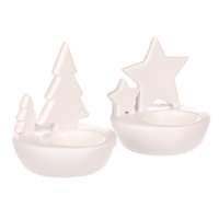 Porcelánový bílý svícen pro vložení čajové svíčky bude skvělým doplňkem vaší vánoční výzdoby. Díky němu obohatíte svůj prostor o nevšední vizuální zážitek. Svícen je totiž ze strany ozdoben siluetami stromečků, hvězdiček, či soba, díky čemuž budete mít možnost při zapálené svíčce pozorovat krásné stíny zvětšené na stěně. Nalaďte se to té pravé sváteční atmosféry, díky této elegantní a vkusné ozdobě s možností hrátek se světlem a stíny. Výška (cm): 16.00 Šířka (cm): 10.00 Hloubka (cm): 10.00 Hmotnost - netto (kg): 0.00 Hmotnost (g): 160.00 Barva primární: Bílá Materiál: Porcelán Sezóna: Vánoce Alternativní sezóna: Zima Počet kusů v kartonu: 48.00 Počet kusů v boxu: 4.00 Rozměry: cm Hmotnost:0,16 kg Cena je za 4 kusů.