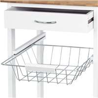 Servírovací stolek a regál DR-044 kombinuje přírodní masiv bambusové desky s bílým matným lakem na MDF nohou, což zajišťuje pevné a stabilní provedení vhodné do moderních i klasických interiérů. Vrchní deska z bambusu nabízí odolný a snadno udržovatelný povrch ideální pro přípravu a servírování jídel. Stolek je vybaven praktickou zásuvkou s kovovou úchytkou pro uložení drobných předmětů, drátěným košíkem pro snadný přístup k potravinám a dvěma policemi, které umožňují efektivní uspořádání nádobí či lahví. Pojezdová kolečka s brzdou zajišťují snadnou mobilitu a stabilitu při použití. Kompaktní rozměry a funkční design přinášejí do kuchyně nebo jídelny praktické řešení pro organizaci a servírování. Demontované: Ano Hloubka (cm): 37.00 Karton 1 (cm): 72x38x11,5 Nosnost (kg): 15.00 Počet balení: 1.00 Šířka (cm): 37.00 Výška (cm): 76.00 Objem celkem (m3): 0.03 Počet kusů v kartonu: 1.00 Hmotnost - netto (kg): 5.00 Hmotnost - brutto (kg): 6.00 Barva primární: Bílá Skupina zboží: Regál Tvar desky: Čtvercový Typ podnože: 4 nohy Materiál desky: Masiv Materiál nohou: MDF Místnost: Jídelna Barva desky: Přírodní Dekor desky: Bambus Montáž: Vyžaduje montáž Materiál konstrukce: MDF Rozměry: 37x37x76 cm Hmotnost:5,5 kg
