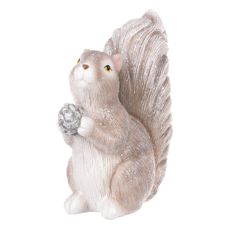 Zakomponujte kouzlo zimní přírody do vašeho domova s touto dekorativní veverkou z polyresinu. Tato okouzlující ozdoba je vytvořena ve světle béžovém provedení se třpytkami, které dodávají jiskřivý nádech. Své barevné zpracování elegantně spojuje s vánoční atmosférou, což z ní dělá ideální doplněk pro váš interiér během tohoto svátečního období. S nádechem roztomilosti a autentičnosti zaujme tato veverka každého pozorovatele. Její roztomilý čumáček a zvědavý výraz přivolávají úsměv na tváři. V pacičkách pevně svírá zasněženou šišku, jako by si ji chtěla odnést do svého zimního úkrytu. Tato veverka není jen dekorací, je to kousek živé přírody, který můžete mít stále při sobě i během zimního období. Rozměry: cm Hmotnost:0,17 kg Cena je za 4 kusů.