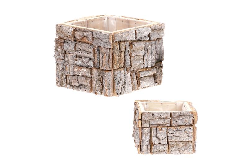 Skvělou volbou pro ty, kteří preferují přírodní materiály a rádi by skloubili jejich přirozenou krásu s praktickou funkcí, bude tento čtvercový obal na květiny z bělené kůry. Je dostatečně prostorný a šikovně tvarovaný, což umožňuje výsadbu širokého spektra okrasných rostlin a umístění na nejlepší zvolené místo dle vašich představ. Dřevěné obaly jsou poměrně lehčí oproti jiným, což má výhody ve snadnější manipulaci s nimi. Součástí produktu je i ochranná plastová fólie, jenž vyplňuje vnitřní část a chrání ji před vnějšími vlivy. Vytvořte si místo, které bude oplývat přírodní krásou a bude ladit s okolním prostředím díky této nápadité dekoraci s praktickým využitím. Hloubka (cm): 10.00 Materiál: Dřevo Použití: Obal Sada více kusů: 2 Šířka (cm): 15.00 Tvar: Čtvercový V sadě ks: 2 Výška (cm): 15.00 Velikost L (cm): 20x15x20 cm Velikost M (cm): 14x11x14 cm Barva primární: Přírodní Sezóna: Celorok Počet kusů v kartonu: 18.00 Karton 1 (cm): 41x61x48 Hmotnost (g): 1000.00 Rozměry: 15x15x10cm,19x19x15cm Hmotnost:1,11 kg Cena je za 2 kusů.