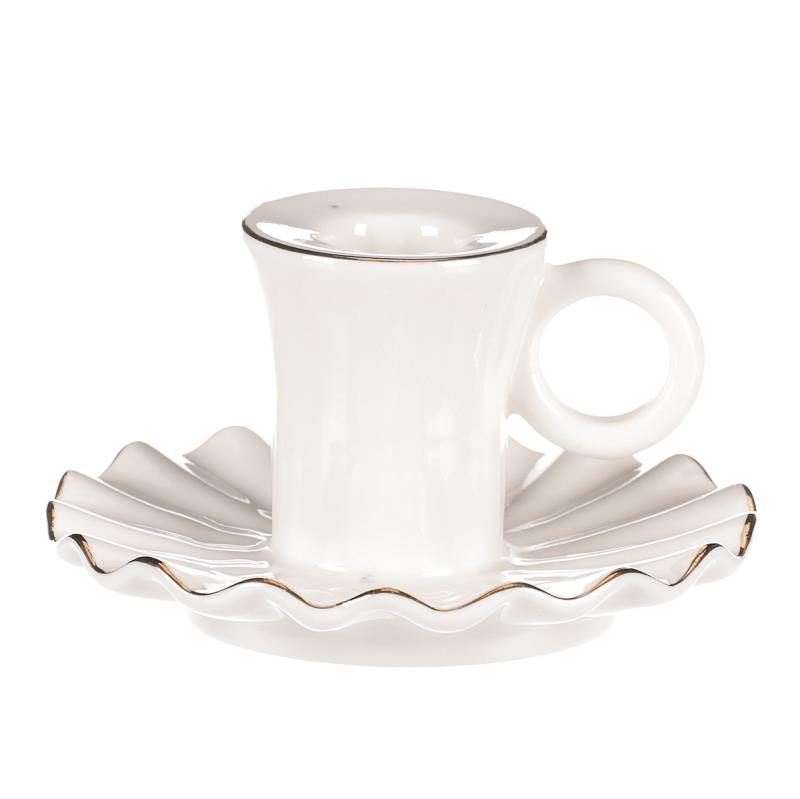 Zvýrazněte vánoční atmosféru s naším elegantním bílým porcelánovým svícnem ve tvaru hrníčku pro vložení kónické svíčky a základnou v podobě podšálku. Tato univerzální vánoční ozdoba přináší do vašeho domova nádech tradičního kouzla a šarmu. Díky svému nadčasovému vzhledu se skvěle hodí do různých interiérů a zajišťuje krásné světlo, které zpříjemní váš sváteční čas. Šířka (cm): 11.00 Výška (cm): 6.00 Hloubka (cm): 11.00 Alternativní sezóna: Celorok Barva primární: Bílá Materiál: Porcelán Hmotnost (g): 182.00 Sezóna: Vánoce Počet kusů v kartonu: 48.00 Počet kusů v boxu: 4.00 Rozměry: cm Hmotnost:0,21 kg Cena je za 4 kusů.