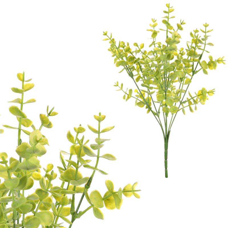 Svazek eukalyptových větévek, velmi věrný své přírodní předloze, je ideálním doplňkem do květinových vazeb a aranží. Každá větévka je bohatě opatřena drobnými kulatými lístky, které tvarem i barvou dobře kontrastují s květy nebo ostatní zelení. Barva primární: Zelená Druh: Eukalyptus Hloubka (cm): 17.00 Materiál: Plast Mix druhů: Ne Použití: Dekorace interiéru Šířka (cm): 17.00 Ve svazku ks: 6.00 Výška (cm): 34.00 Hmotnost - netto (kg): 0.00 Hmotnost (g): 47.00 Sezóna: Celorok Počet kusů v kartonu: 144.00 Počet kusů v boxu: 24.00 Rozměry: 17x17x34cm Hmotnost:0,05 kg Cena je za 12 kusů.
