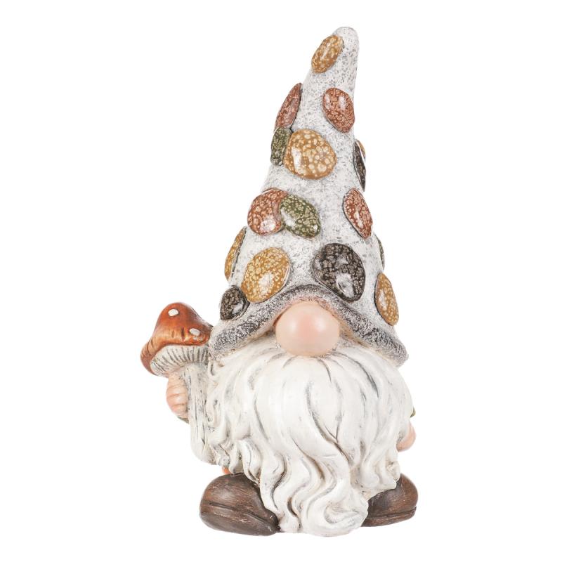 Tato dekorační figurka představuje roztomilého skřítka vyrobeného z magneziové keramiky. Jeho bílé vousy a špičatá šedá čepice imitující kámen s ozdobnými barevnými oblázky dodávají postavičce jedinečný a hravý vzhled. V ruce drží mochomůrku, jako by se zrovna chtěl pochlubit svým úlovkem. Jediným viditelným prvkem z obličeje je jeho nos, což dodává této figurce humorný a tajemný výraz. Tato postavička skřítka je nádherným doplňkem pro vaši zahradu, terasu nebo interiér a určitě přiláká pozornost všech, kdo ji uvidí. Je to malý kousek magie, který přinese do vašeho prostoru radost a pohádkovou atmosféru. Rozměry: cm Hmotnost:1,4 kg Cena je za 2 kusů.
