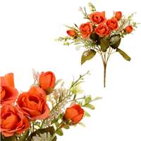 Kytice umělých růží s oranžovou barvou květů bude působivou květinovou dekorací. Její krása časem neuvadne a můžete tak využívat tuto umělou květinu opakovaně, nebo ji mít jako trvalou ozdobu. Vynikne sama o sobě v pěkné váze, nebo může být součástí ucelené květinové výzdoby pro různé oslavy, či jiné společenské události. Nemusíte si dělat starosti s údržbou a zaléváním, neboť jako umělá, nepotřebuje žádnou péči, a přitom vypadá fantasticky. Je věrohodnou kopií živé varianty, a tak při letmém pohledu na ní, ji ani nerozeznáte od originálu. Sezóna: Celorok Ve svazku ks: 6.00 Šířka (cm): 17.00 Hloubka (cm): 14.00 Výška (cm): 29.00 Barva primární: Oranžová Materiál: Textil Hmotnost (g): 35.00 Počet kusů v boxu: 48.00 Počet kusů v kartonu: 384.00 Druh rostliny: Rozměry: cm Hmotnost:0,04 kg Cena je za 6 kusů.