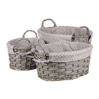 Tento proutěný košík vystlaný látkou je výborným pomocníkem pro milovníky přírodních materiálů, kteří se snaží udržovat pořádek v regálech a na poličkách. Nabízíme jej v sadě o třech různých velikostech. Je v moderní šedé barvě a má po stranách dvě ucha, která usnadňují manipulaci s ním. Díky svému jednoduchému a přirozenému designu se dokonale hodí do různých typů interiérů. Můžete jej využít k uskladnění a uspořádání různých věcí, od knih a hraček po textilie a různé drobnosti konče. Tento košík vám nejen pomůže udržovat nastolený pořádek, ale také přinese do vašeho prostoru příjemný nádech přírodní elegance. Sezóna: Celorok Šířka (cm): 39.00 Hloubka (cm): 31.00 Výška (cm): 22.00 Barva primární: Šedá Materiál: Proutí Sada více kusů: 3 Tvar: Kruhový Hmotnost (g): 810.00 Velikost S (cm): 28x21x18 Velikost M (cm): 34x26x21 Velikost L (cm): 39x31x22 Rozměry: cm Hmotnost:0,93 kg Cena je za 2 kusů.