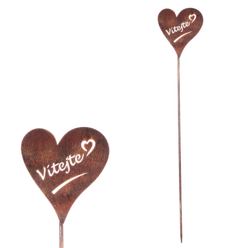 Kovový zápich v podobě srdíčka v měděné až narezavělé barvě s nápisem "Vítejte" je skvělým prostředkem, jak prokázat okolí svou otevřenost a zároveň dodat unikátní dekoraci vaší zahradě. Můžete jej snadno umístit na záhony, nechat vyniknout na volno v trávníku, nebo ozdobit okolí květin, či keřů. Zabere málo místa, a přitom bude výrazným bodem, který jen stěží někdo přehlédne. Kovová konstrukce zajišťuje trvanlivost a odolnost vůči povětrnostním vlivům, což znamená, že tuto dekoraci můžete nechat venku prakticky po celý rok. Tento zápich přidává do vaší zahrady nejen zajímavý estetický prvek, ale také osobitý charakter, a stane se výrazným bodem vaší celkové kompozice. Hloubka (cm): 1.00 Hmotnost (g): 150.00 Šířka (cm): 16.00 Barva primární: Měděná Alternativní sezóna: Celorok Sezóna: Zahrada Výška (cm): 80.00 Materiál: Kov Rozměry: cm Hmotnost:0,17 kg Cena je za 4 kusů.