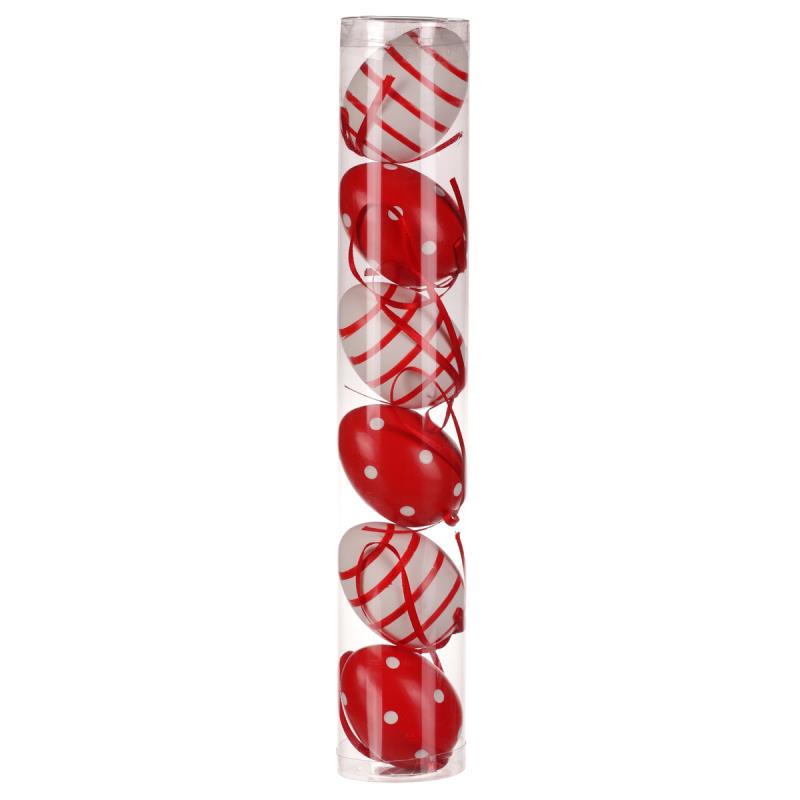 Červená plastová vajíčka s proužky a puntíky jsou jako kapky jara a nového života, která přinesou radost z přečkání dlouhé zimy do vašeho domova. Vajíčka jsou ikonickým symbolem Velikonoc, a pokud hledáte dekoraci, která bude pěkná a vydrží prakticky cokoli, ta plastová budou tou správnou volbou. Ať už máte rádi jemnější odstíny nebo zářivé barvy, z naší široké nabídky si vyberete pro vás to nejlepší. Můžete si vytvořit i unikátní různobarevnou výzdobu, a tím projevit svůj osobitý styl. Možnosti jsou neomezené a závisí jen na vaší fantazii. Tato vajíčka jsou opatřena stuhou, což znamená, že je můžete ihned snadno pověsit na místo určení. Sezóna: Velikonoce Šířka (cm): 4.00 Hloubka (cm): 4.00 Výška (cm): 6.00 Materiál: Plast Barva primární: Červená Alternativní sezóna: Jaro Barva sekundární: Bílá Ve svazku ks: 6.00 Hmotnost (g): 40.00 Počet kusů v boxu: 12.00 Počet kusů v kartonu: 96.00 Rozměry: cm Hmotnost:0,06 kg Cena je za 6 kusů.