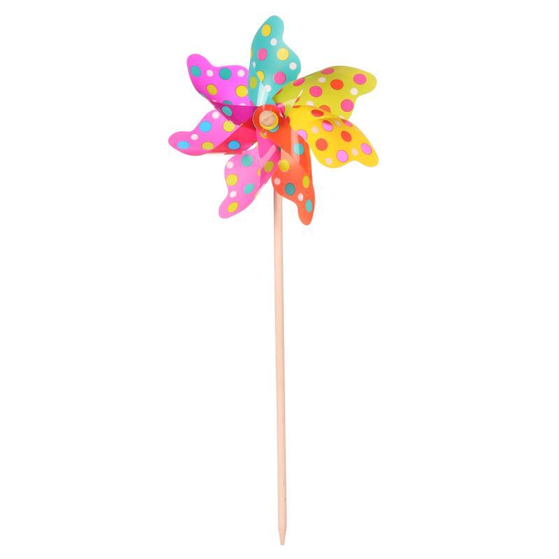 Velký plastový větrník na dřevěném zápichu vnese do vašeho prostoru hravost a pestrobarevnost. Každou lopatku má totiž v jiném odstínu, a navíc jsou zdobené barevnými puntíky. Ozdobte si záhon, nebo květináč právě tímto typem dekorace, který dodá veselou atmosféru. Stačí slabý vánek a větrník se dá ihned do pohybu, což přinese neobyčejný vizuální zážitek. Svými barvami a vzory budou i skvělým dárkem pro vaše děti, které si budou moci vytvořit svůj barevný pohádkový koutek, ať už na zahradě nebo v truhlíku za oknem. Barva primární: Vícebarevná Šířka (cm): 22.00 Alternativní sezóna: Zahrada Sezóna: Jaro Hloubka (cm): 10.00 Výška (cm): 55.00 Materiál: Plast Hmotnost (g): 46.00 Mix druhů: Ano Počet ks v balení: 6.00 Počet kusů v boxu: 6.00 Počet kusů v kartonu: 72.00 Rozměry: cm Hmotnost:0,09 kg Cena je za 6 kusů.