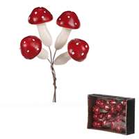 Drobné a lehké plastové houby na drátku jsou všestrannými ozdobami pro vytváření především podzimních aranží. Mají tmavě červenou barvu kloboučků s bílými puntíky, přípomínající mochomůrky červené a balené jsou po 24 kusech v krabičce. Ohebné drátky, na kterých jsou připevněny, umožnují jejich snadnou aplikaci. Můžete si vytvořit své vlastní podzimní lesní zákoutí, na které se bude radost dívat. Díky tomu, že jsou umělé a nádherně zpracované, vám nabízí trvalou a nikdy nekončící krásu pro vaše nápady a kreativní tvorbu. Upozorňujeme však, že nejsou určené ke konzumaci a důrazně doporučujeme chránit je mimo dosah dětí. Barva primární: Červená Výška (cm): 12.00 Rozměr obalu (cm): 13 x 19 x 5 Sezóna: Podzim Hloubka (cm): 3.00 Šířka (cm): 3.00 Hmotnost (g): 100.00 Materiál: Plast Počet ks v balení: 24.00 Ve svazku ks: 4.00 Rozměry: cm Hmotnost:0,17 kg Cena je za 2 kusů.