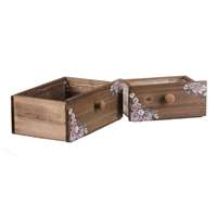 Tato sada dřevěných obalů na květiny vnese do vašeho domova romantický nádech. Sada obsahuje dva různě velké obaly, každý se základní hnědou barvou a barevnými obrázky růžiček v rozích. Tyto krásné detaily dodají vašim květinám jedinečný vzhled a díky igelitové vložce chrání je i samotný obal. Perfektní pro milovníky květinového dekoru a přírodních materiálů, ideální pro umístění jak do interiéru, tak do kratých venkovních prostor. Skvěle se hodí na okenní parapet, zahradu nebo balkón. Objem celkem (m3): 0.00 Výška (cm): 10.00 Hloubka (cm): 16.00 Barva primární: Hnědá Materiál: Dřevo Sezóna: Celorok Šířka (cm): 26.00 Sada více kusů: 2 Hmotnost (g): 600.00 Rozměry: cm Hmotnost:0,5 kg Cena je za 2 kusů.