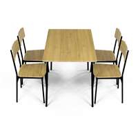 Jídelní set od značky Autronic v industriálním stylu je ideální volbou pro moderní interiéry. Sestava obsahuje stůl a čtyři židle s černými kovovými nohami, které vytvářejí zajímavý kontrast s deskami v dekoru divokého dubu. Stůl i židle jsou vyrobeny z kvalitního MDF, které zaručuje vysokou odolnost a stabilitu. Tento set je navržen pro pohodlné stolování čtyř osob a perfektně se hodí do jídelny. Díky svému minimalistickému designu a přírodním tónům snadno zapadne do každého moderního domova. Počet kusů v kartonu: 1.00 Počet balení: 1.00 Tloušťka desky (cm): 1.50 Šířka (cm): 110.00 Šířka stolu (cm): 110.00 Karton 1 (cm): 115x72,5x11 Typ podnože: 4 nohy Rozměr nohy (cm): 2,5 x 2,5 / 2 x 2 Barva primární: Hnědá Skupina zboží: Jídelní set s 4 židlemi Hmotnost - brutto (kg): 29.00 Šířka sedu (cm): 38.50 Šířka židle (cm): 38.50 Místo pro počet osob: 4.00 Styl: Industriální Dekor desky: Divoký dub Hloubka (cm): 70.00 Montáž: Vyžaduje montáž Hmotnost - netto (kg): 28.00 Výška židle (cm): 83.50 Hloubka sedu (cm): 39.50 Výška sedu (cm): 45.00 Hloubka židle (cm): 45.00 Rozklad: Ne Hloubka stolu (cm): 70.00 Barva nohou: Černá Světlá výška (cm): 74.00 Výška stolu (cm): 75.50 Výška (cm): 76.00 Demontované: Ano Materiál: MDF Materiál desky: MDF Tvar desky: Obdélníkový Materiál nohou: Kov Místnost: Jídelna Highlight 1: Set, stůl + 4 židle Průřez nohy: Kruhový Barva desky: Hnědá Rozměry: cm Hmotnost:29 kg