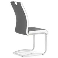 Moderní jídelní židle na pohupové chromové podnoži, čalouněná koženkou v šedé barvě s bílými boky. Sedák s opěrákem jsou dekorativně prošité, chromové madlo zajistí snadnou manipulaci. Židle jsou velmi pohodlné a navíc stylové. Nosnost do 110 kg. Dekor primární: Chrom Demontované: Ano Hloubka (cm): 59.00 Karton 1 (cm): 89x46x52 Materiál konstrukce: Kov Nosnost (kg): 120.00 Počet balení: 1.00 Styl: Moderní Šířka (cm): 42.00 Šířka sedu (cm): 42.00 Typ podnože: Pohup Výška (cm): 98.00 Výška sedu (cm): 47.00 Barva primární: Šedá Materiál: Ekokůže Hloubka sedu (cm): 44.00 Barva nohou: Stříbrná Skupina zboží: Jídelní židle Hmotnost - netto (kg): 6.63 Hmotnost - brutto (kg): 7.00 Objem celkem (m3): 0.21 Počet kusů v kartonu: 4.00 Otočná: Ne Područky: Ne Materiál nohou: Kov Druh potahové látky: Hladká Ekokůže Highlight 1: Dekorativní prošívání sedáku i opěráku Rozměry: 42x59x98x47 cm Hmotnost:6,75 kg