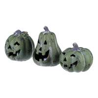 Vytvořte si jedinečnou podzimní atmosféru s naším mixem malých keramických dýní s vyřezanými obličeji. Každá z nich má vyřezaný obličej, který připomíná veselého strašáka, a je vyrobena z keramiky, což zajišťuje jejich trvanlivost. Mají dutý vnitřek, kde se nachází LED osvětlení, což za dlouhých podzimních večerů bude mít neodolatelný světelný efekt. Tři druhy dýní se liší tvarem, ale všechny jsou ve stejném, zeleném odstínu, což zajistí harmonický vzhled vaší dekorace. Tyto malé keramické tykve jsou skvělou volbou pro ozdobení jak venkovních prostor, tak i interiérů vašeho domova. Užijte si naplno atmosféru barevného podzimu, případně děsivého Halloweenu, s našimi keramickými dýněmi s osvětlením. Výška (cm): 11.00 Materiál: Keramika Hmotnost (g): 190.00 Barva primární: Zelená Sezóna: Podzim Alternativní sezóna: Halloween Mix druhů: Ano Šířka (cm): 9.00 Hloubka (cm): 9.00 Počet baterií: 2.00 Baterie součástí balení: Ano Typ baterie: LR44 Počet kusů v kartonu: 48.00 Počet kusů v boxu: 6.00 Rozměry: cm Hmotnost:0,21 kg Cena je za 6 kusů.