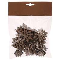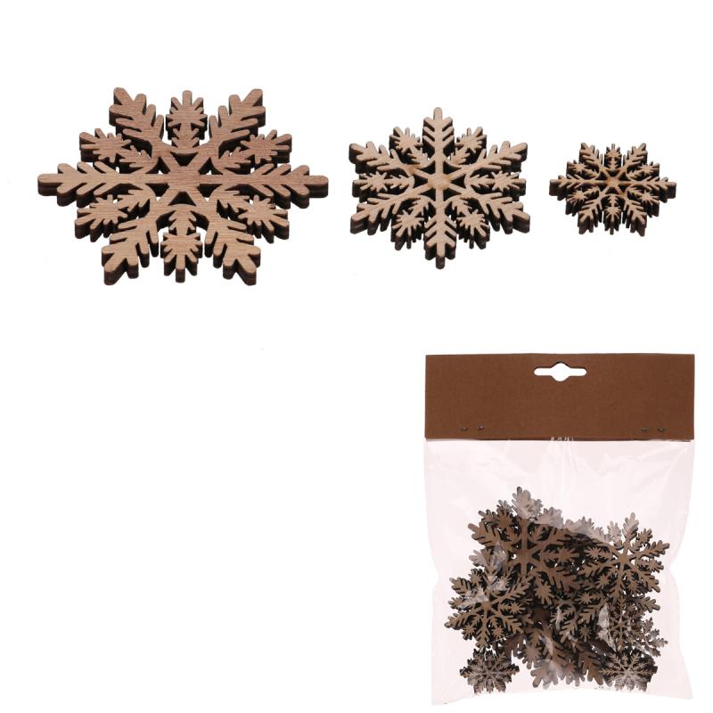 Sněhové vločky - dřevo, mix 3 vel., přírodní b., cena za balení (18 ks)