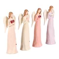 Mix čtyř druhů polyresinových andělů v jemných pastelových odstínech přináší do vašeho domova symboliku lásky, míru a bezpečí. Každá figurka se liší tím, co drží v něžných dlaních. Jeden má hvězdičku, druhý holubičku, třetí srdíčko a poslední má pouze spojené dlaně, k projevení úcty. S těmito elegantními anděly vykouzlíte hřejivou atmosféru a podtrhnete krásu každého interiéru. Výška (cm): 20.00 Hmotnost (g): 200.00 Barva primární: Vícebarevná Materiál: Polyresin Sezóna: Celorok Počet kusů v boxu: 4.00 Hloubka (cm): 6.00 Počet kusů v kartonu: 32.00 Šířka (cm): 7.00 Mix druhů: Ano Rozměry: cm Hmotnost:0,25 kg Cena je za 8 kusů.