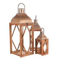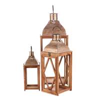 Dřevěné lucerny ve čtyřbokém designu v sadě tří různých velikostí přinášejí do prostoru eleganci a útulné osvětlení. Rámy v přírodní barvě dřeva spolu s velkými čirými skly umožňují krásný průchod světla. Elegantní kovový vršek s praktickým madlem dodává lucernám stylový vzhled a usnadňuje manipulaci. Objem celkem (m3): 0.06 Počet kusů v kartonu: 1.00 Materiál: Dřevo Barva primární: Hnědá Hloubka (cm): 26.00 Šířka (cm): 26.00 Sezóna: Celorok Hmotnost - netto (kg): 6.55 V sadě ks: 3 Hmotnost (g): 6550.00 Výška (cm): 72.00 Rozměry: cm Hmotnost:7,56 kg