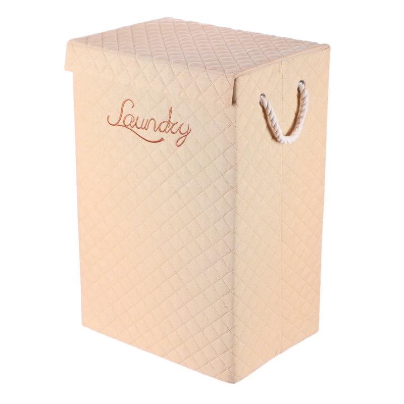 Vysoký látkový koš v béžovém odstínu ve tvaru krabice s uchy z provázků a víkem, navíc potažený hebkou látkou, bude skvělou volbou pro každou domácnost. Praktický a stylový prostředek k tomu, jak efektivně schovat prádlo a zároveň přidat do prostoru na oko příjemný dekorační prvek. Hmotnost (g): 1875.00 V sadě ks: 1 Materiál: Látka Barva primární: Béžová Sezóna: Celorok Hloubka (cm): 30.00 Šířka (cm): 40.00 Výška (cm): 60.00 Tvar: Obdélníkový Rozměry: cm Hmotnost:2 kg