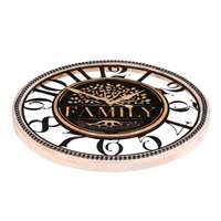 Tyto nástěnné hodiny s průměrem 60 cm kombinují dřevo a kov, aby vytvořily jedinečný a osobitý design. Velké černé arabské číslice jsou skvěle viditelné a doplňují střed, který zdobí elegantní strom života s nápisem "FAMILY". Tento motiv přidává hodinám i hluboký význam důležitosti rodiny a našich kořenů, což z nich činí nejen praktický ukazatel času, ale i krásný dekorativní prvek, který se stane středobodem každé místnosti. Počet baterií: 1.00 Počet kusů v boxu: 1.00 Sezóna: Celorok Počet kusů v kartonu: 4.00 Výška (cm): 60.00 Šířka (cm): 60.00 Hloubka (cm): 4.00 Baterie součástí balení: Ne Barva primární: Černá Materiál: Kov Tvar: Kruhový Typ baterie: AA Hmotnost (g): 2200.00 Rozměry: cm Hmotnost:2,77 kg