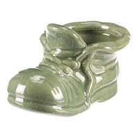 Zelená keramická bota je nejen nevšedním obalem na květiny, ale také originální dekorací, která zaručeně upoutá pozornost všech návštěvníků. Je ideální pro umístění na zahradě, terase, balkóně, případně i v interiéru, a přináší nádhernou symbiózu mezi květinami a unikátním tvarem obalu. Vytvořte si díky němu úžasně vyzdobený prostor, ve kterém prokážete vaší vytříbenou kreativitu a smysl pro detail. Objem celkem (m3): 0.00 Počet kusů v boxu: 1.00 Výška (cm): 12.00 Šířka (cm): 12.00 Počet kusů v kartonu: 12.00 Materiál: Keramika Barva primární: Zelená Hloubka (cm): 22.00 Alternativní sezóna: Celorok Sezóna: Zahrada Hmotnost (g): 760.00 Rozměry: cm Hmotnost:0,85 kg Cena je za 2 kusů.