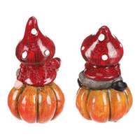 Houboví keramičtí skřítkové s LED osvětlením, jsou svým provedením neodolatelnou variantou pro podzimní výzdobu interiérů i venkovních prostor. Najdete zde dva druhy skřítků, z nichž každý sedí na oranžové dýni, avšak liší se svým odlišným posedem. Místo tradiční špičaté čepice mají na hlavě klobouk z mochomůrky červené, což dodává jejich vzhledu na jedinečnosti. Mají roztomilý bambulatý nos a bílý plnovous, který jim plně zakrývá obličej. Dýně je zdobena otvory po obvodu, skrze které může pronikat světlo, což dodává těmto skřítkům ještě větší nádech kouzla a mystiky. Tato dekorace určitě okouzlí všechny vaše návštěvníky a dodá prostoru pestrobarevnost a veselou atmosféru. Barva primární: Červená Materiál: Keramika Výška (cm): 17.00 Barva sekundární: Oranžová Alternativní sezóna: Zahrada Sezóna: Podzim Hmotnost (g): 280.00 Mix druhů: Ano Šířka (cm): 9.00 Hloubka (cm): 9.00 Počet baterií: 2.00 Funkce: LED osvětlení Baterie součástí balení: Ano Typ baterie: LR44 Počet kusů v kartonu: 36.00 Počet kusů v boxu: 4.00 Rozměry: cm Hmotnost:0,28 kg Cena je za 4 kusů.