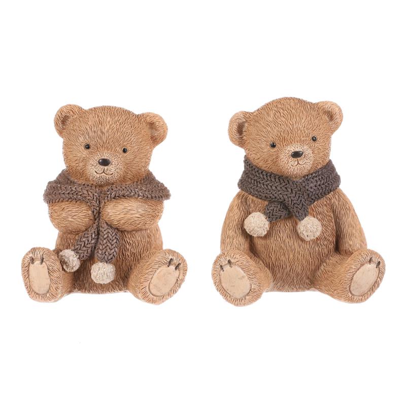 Roztomilý medvěd se šálou kolem krku vnese do vašeho domova veselou a hravou atmosféru. Tato polyresinová figurka je dostupná ve dvou variantách, přičemž se liší svou polohou a barvou šály. Jedná se tak o ideální dekoraci pro vánoční výzdobu, která krásně doplní sváteční atmosféru. Hmotnost - brutto (kg): 0.00 Hmotnost - netto (kg): 0.17 Objem celkem (m3): 0.00 Výška (cm): 10.00 Hmotnost (g): 165.00 Sezóna: Vánoce Počet kusů v boxu: 2.00 Barva primární: Hnědá Materiál: Polyresin Počet kusů v kartonu: 24.00 Hloubka (cm): 7.00 Mix druhů: Ano Šířka (cm): 9.00 Rozměry: cm Hmotnost:0,25 kg Cena je za 4 kusů.