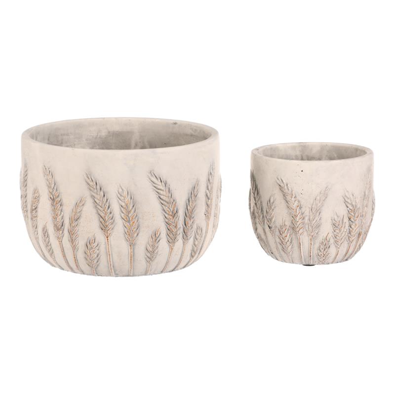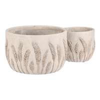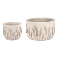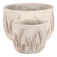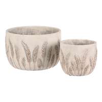 Betonový obal s jemným vzorem obilných klasů v šedo-béžových tónech s patinou, krásně doplní vaše oblíbené rostliny. Pevný a stabilní základ, který nechá vyniknout přirozenou krásu květin v nich umístěných. Stylová volba pro každý kout vašeho domova či zahrady. Jedná se o sadu 2 různě velkých obalů ve shodném designu. Objem celkem (m3): 0.01 Počet kusů v boxu: 1.00 Barva primární: Šedá Výška (cm): 15.00 Počet kusů v kartonu: 2.00 Materiál: Beton Hmotnost (g): 3025.00 Hloubka (cm): 22.00 Šířka (cm): 22.00 Alternativní sezóna: Zahrada Sezóna: Podzim Rozměry: cm Hmotnost:3,5 kg Cena je za 2 kusů.