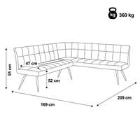 Stylová rohová jídelní lavice značky Autronic nabízí ideální kombinaci pohodlí a moderního designu. Čalounění z odolné látky s jemným povrchem je doplněno o černé kovové nohy, které dodávají lavici stabilitu a elegantní vzhled. Měkké polstrování z PU pěny zajišťuje komfort při sezení, a to i během delších jídel. Díky svému minimalistickému provedení se snadno začlení do jakékoliv jídelny. Tato lavice je skvělou volbou pro ty, kdo hledají funkční a stylový nábytek. Počet kusů v kartonu: 1.00 Počet balení: 1.00 Barva primární: Šedá Šířka (cm): 169.00 Materiál: Látka Typ podnože: 4 nohy Karton 1 (cm): 171x72x60,5 Materiál výplně: PU pěna Hloubka (cm): 209.00 Skupina zboží: Jídelní lavice Rozměr nohy (cm): 3,5 Nosnost (kg): 360.00 Styl: Industriální Druh potahové látky: Látka Vintage Hloubka sedu (cm): 47.00 Hmotnost - brutto (kg): 49.00 Výška sedu (cm): 52.00 Montáž: Vyžaduje montáž Hmotnost - netto (kg): 47.50 Područky: Ne Otočná: Ne Barva nohou: Černá Demontované: Ano Materiál nohou: Kov Průřez nohy: Kruhový Výška (cm): 91.00 Číslo dekoru: CF-005 GREY Místnost: Jídelna Rozměry: 169 x 209 x 91 x 52 cm Hmotnost:49 kg