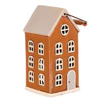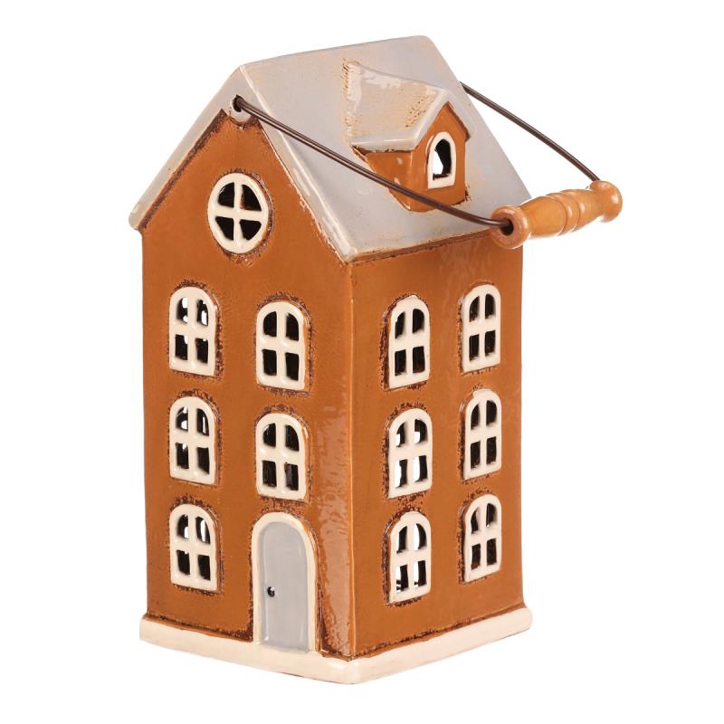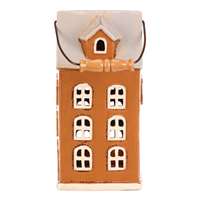 Keramický patrový domeček ve světle hnědém odstínu, bude perfektní dekorací pro dlouhé podzimní a zimní večery. Je opatřený rukojetí, pro snadné přenášení, přičemž uvnitř má prostor na vložení čajové svíčky. Po jejím rozsvícení se rozzáří světlo skrze otvory v okénkách čímž navodíte neodolatelnou sváteční atmosféru. Objem celkem (m3): 0.01 Počet kusů v boxu: 1.00 Hmotnost (g): 1350.00 Materiál: Keramika Barva primární: Hnědá Sezóna: Podzim Počet kusů v kartonu: 6.00 Mix druhů: Ne Výška (cm): 27.00 Šířka (cm): 12.00 Hloubka (cm): 10.00 Rozměry: cm Hmotnost:1,33 kg Cena je za 2 kusů.