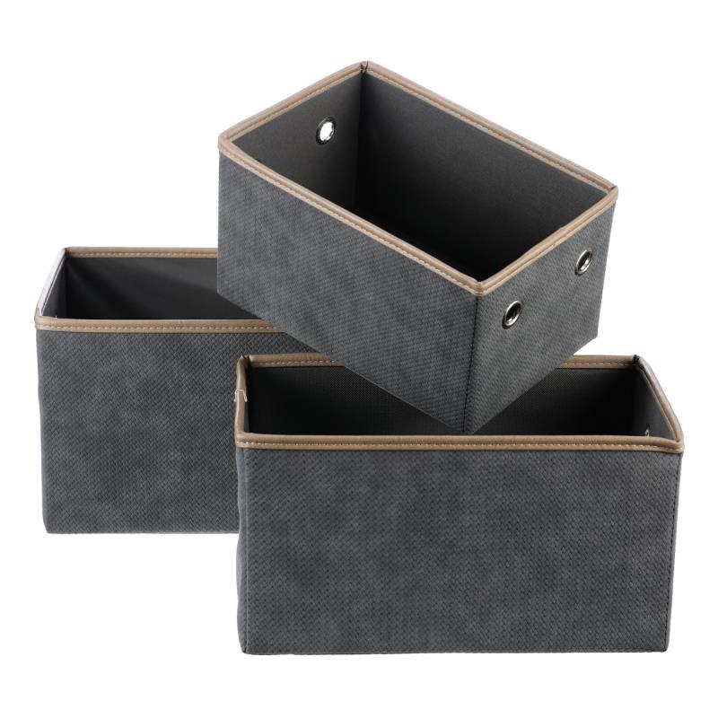 Sada rozkládacích látkových košů o třech různých velikostech v šedých barvách, je skvělým pomocníkem pro uskladnění prádla nebo dalších předmětů k uložení. Díky otvorům po stranách můžete snadno navázat poutka pro lepší manipulaci a přenášení. Elegantní design a praktičnost se spojily v jednom produktu, který vám pomůže udržet pořádek a hezké prostředí ve vaší domácnosti. Hmotnost (g): 1360.00 Barva primární: Šedá Materiál: Látka Výška (cm): 20.00 Hloubka (cm): 28.00 Sezóna: Celorok Velikost S (cm): 29x19x16 Velikost M (cm): 34x23x18 Velikost L (cm): 39x28x20 V sadě ks: 3 Šířka (cm): 39.00 Tvar: Obdélníkový Rozměry: cm Hmotnost:1,5 kg