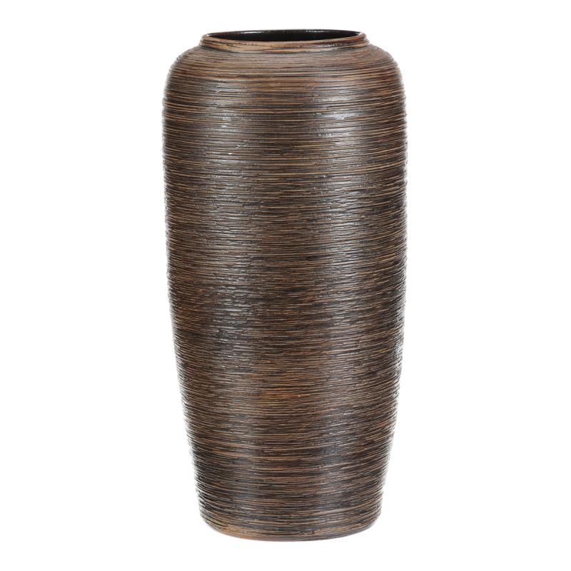 Keramická váza o výšce 40 cm v hnědém provedení zaujme jemným zaobleným tvarem a vodorovnými rýhami, které jí dodávají autentický vzhled ruční práce, jako by ji vytvořil starověký mistr. Skvěle podtrhne krásu každé rostliny a povznese ji na novou úroveň. Objem celkem (m3): 0.02 Materiál: Keramika Hloubka (cm): 20.00 Šířka (cm): 20.00 Barva primární: Hnědá Sezóna: Celorok Počet kusů v kartonu: 4.00 Výška (cm): 40.00 Hmotnost (g): 3500.00 Rozměry: cm Hmotnost:4,25 kg