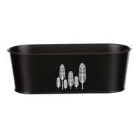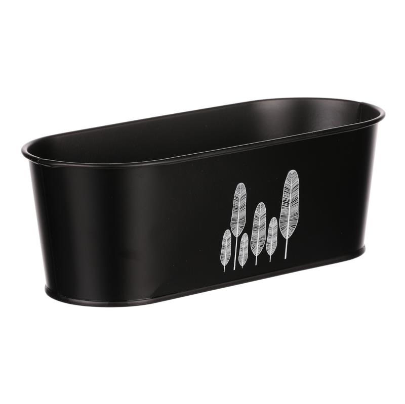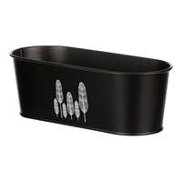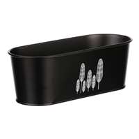 Kovový truhlík v elegantní černé barvě s bílými peříčky po stranách je skvělým prostředkem, jak zvýraznit krásu vašich rostlin. Ideální volba pro vaše oblíbené květiny, které si zaslouží být vystavené ve slušivém obalu. Tvar: Oválný Hmotnost (g): 225.00 Hloubka (cm): 25.00 Sezóna: Celorok Šířka (cm): 28.00 Sada více kusů: Ne Barva primární: Černá Materiál: Kov Výška (cm): 9.00 Rozměry: cm Hmotnost:0,23 kg Cena je za 3 kusů.