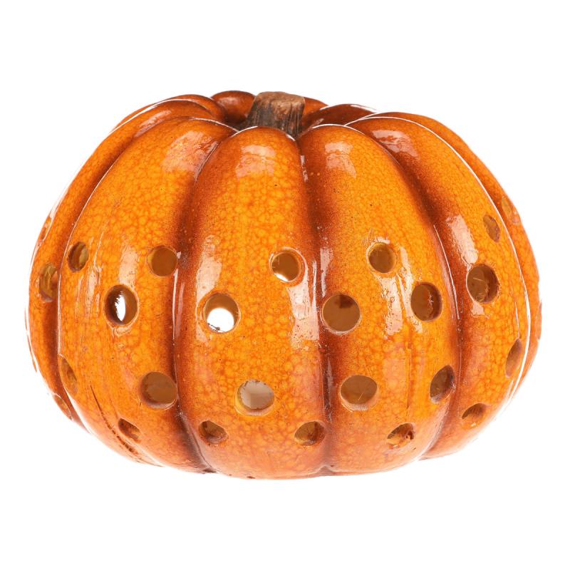 Žluto-oranžová dýně z keramiky s LED osvětlením uvnitř navodí tu správnou podzimní atmosféru. Po celém obvodu jsou různě velké kulaté otvory, kterými bude světlo zevnitř krásně vycházet ven a vytvářet neodolatelný světlený efekt. Objem celkem (m3): 0.03 Barva primární: Žlutá Počet kusů v kartonu: 2.00 Výška (cm): 21.00 Počet baterií: 3.00 Materiál: Magnesium Alternativní sezóna: Podzim Sezóna: Halloween Mix druhů: Ne Baterie součástí balení: Ne Šířka (cm): 33.00 Hloubka (cm): 33.00 Typ baterie: AA Hmotnost (g): 1850.00 Rozměry: cm Hmotnost:3 kg Cena je za 2 kusů.
