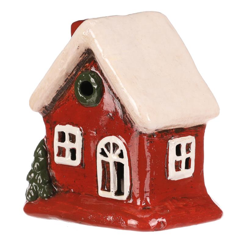 Tento malebný keramický domeček vytvoří kouzelnou atmosféru díky svému zpracování i zabudovanému LED osvětlení uvnitř. Červené stěny, bílá okna a bílá střecha, která je jako pokrytá čerstvým sněhem, dělají z této dekorace krásný doplněk pro podzimní i zimní večery. Ideální pro vytvoření hřejivého koutku ve vašem domově s možností vytvoření neodolatelného světelného efektu. Objem celkem (m3): 0.00 Výška (cm): 11.00 Barva primární: Červená Materiál: Keramika Počet baterií: 2.00 Počet kusů v boxu: 4.00 Počet kusů v kartonu: 48.00 Sezóna: Podzim Mix druhů: Ne Hmotnost (g): 285.00 Hloubka (cm): 7.00 Baterie součástí balení: Ano Šířka (cm): 9.00 Typ baterie: LR44 Rozměry: cm Hmotnost:0,17 kg Cena je za 4 kusů.