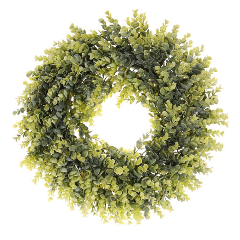 Umělý věnec o průměru 50 cm z eukalyptu v zeleném odstínu je elegantním doplňkem pro podzimní i celoroční výzdobu. Díky přirozenému vzhledu skvěle doplní interiér nebo vstupní dveře a vnese do prostoru jemný nádech přírody. Hmotnost - netto (kg): 0.46 Objem celkem (m3): 0.01 Hloubka (cm): 10.00 Počet kusů v kartonu: 12.00 Barva primární: Zelená Alternativní sezóna: Dušičky Sezóna: Podzim Průměr (cm): 50.00 Hmotnost (g): 460.00 Šířka (cm): 50.00 Výška (cm): 50.00 Materiál: Plast Rozměry: cm Hmotnost:0,61 kg Cena je za 2 kusů.