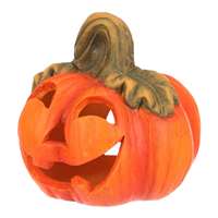 Keramická dýně s vyřezaným obličejem je typickou ozdobou pro podzim a zvláště pak Halloween. Dýně má v sobě dostatek prostoru pro vložení svíčky, čímž vytvoříte skutečně působivou atmosféru, zejména za tmy. Ve dne bude krásnou ozdobou, díky kombinaci sytě oranžové barvy se zelenými lístky. O temných večerech a nocích, po zapálení knotu svíčky, vytvoříte jedinečný až strašidelný světelný efekt díky pronikajícím paprsků světla ven skrze všechny otvory. Objem celkem (m3): 0.00 Hloubka (cm): 10.00 Výška (cm): 11.00 Šířka (cm): 11.00 Materiál: Keramika Hmotnost (g): 210.00 Barva primární: Oranžová Počet kusů v boxu: 4.00 Sezóna: Podzim Počet kusů v kartonu: 24.00 Alternativní sezóna: Halloween Mix druhů: Ne Rozměry: cm Hmotnost:0,36 kg Cena je za 4 kusů.