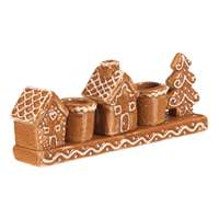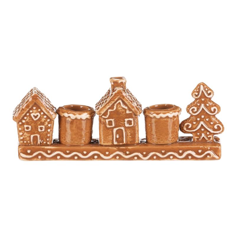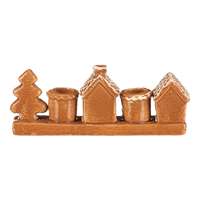 Krásný keramický svícen v perníkovém designu s bílou polevou, bude perfektní ozdobou pro čas Vánoc. Obsahuje celkem 2 kalíšky na vložení kónických svíček. Zbytek svícnu zdobí dva domky a jeden stromeček. Objem celkem (m3): 0.00 Hmotnost - netto (kg): 0.33 Počet kusů v boxu: 1.00 Materiál: Keramika Sezóna: Vánoce Šířka (cm): 21.00 Barva primární: Hnědá Výška (cm): 8.00 Hmotnost (g): 330.00 Počet kusů v kartonu: 36.00 Hloubka (cm): 4.00 Rozměry: cm Hmotnost:0,33 kg Cena je za 3 kusů.