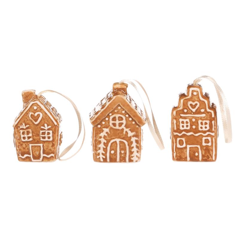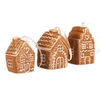 Sada tří mini perníkových domků z keramiky je jako stvořená pro kouzelnou vánoční výzdobu. Každý domeček má svůj jedinečný styl, ale všechny spojuje hnědý povrch s bílým zdobením, připomínající chutný cukrářský výrobek. Jemné stuhy, které jsou součástí každého domku, umožní snadné zavěšení na stromek, stěnu nebo kamkoliv, kde chcete vykouzlit pohádkovou sváteční atmosféru. Objem celkem (m3): 0.00 Hmotnost - netto (kg): 0.12 Materiál: Keramika Sezóna: Vánoce Barva primární: Hnědá Výška (cm): 6.00 Počet kusů v boxu: 6.00 Počet kusů v kartonu: 96.00 Šířka (cm): 4.00 Hloubka (cm): 4.00 Hmotnost (g): 40.00 Mix druhů: Ano Rozměry: cm Hmotnost:0,14 kg Cena je za 6 kusů.