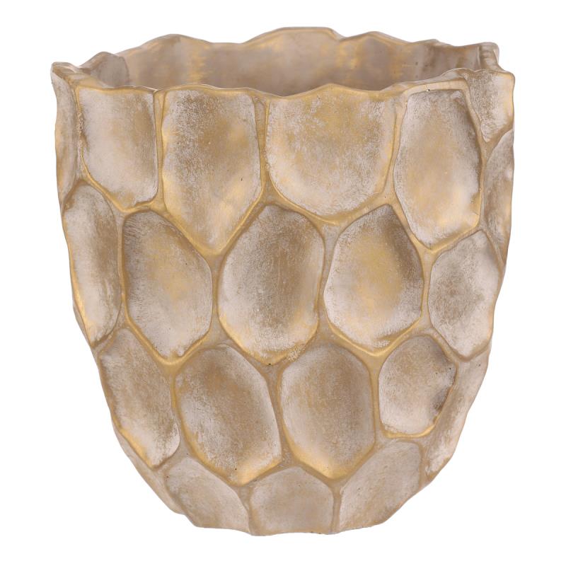 Béžovo-zlatý obal na květiny se vzorem připomínajícím plástev s nepravidelnými šestiúhelníkovými vzory, bude nádherným doplňkem zejména pro sváteční výzdobu. Je betonový, což zajišťuje jeho stabilitu, díky které bude pevným základem pro vaše oblíbené květiny, přízdoby a další dekorace. Počet kusů v boxu: 1.00 Objem celkem (m3): 0.02 Barva primární: Šedá Sezóna: Vánoce Počet kusů v kartonu: 2.00 Šířka (cm): 24.00 Výška (cm): 24.00 Hloubka (cm): 24.00 Materiál: Beton Hmotnost (g): 4100.00 Rozměry: cm Hmotnost:4,5 kg