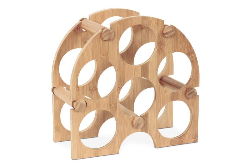 Stojan na víno z přírodního bambusu nabízí praktické a estetické řešení pro uložení lahví. Jeho otevřený design s kruhovými otvory umožňuje bezpečné a stabilní uložení až šesti lahví. Bambusové provedení přináší přírodní vzhled a zároveň materiál, který se snadno udržuje. Kompaktní rozměry stojanu umožňují jeho umístění na kuchyňskou linku, barový pult nebo jídelní stůl, kde vynikne svým jednoduchým a funkčním designem. Rozměry: 30x30x15cm Hmotnost:0,8 kg
