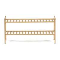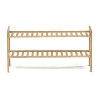 Botník s dvěma policemi je vyroben z masivního bambusu v přírodním odstínu, který zajišťuje pevnost a dlouhou životnost. Otevřená police s vodorovnými latěmi umožňuje efektivní větrání a rychlé schnutí obuvi. Jednoduchý a funkční design botníku se hodí do různých interiérů, kde nabízí praktické řešení pro uskladnění bot. Stabilní rám a rovné nohy zaručují bezpečné a pevné postavení. Rozměry botníku umožňují uložení více párů obuvi bez zbytečné náročnosti na prostor.
