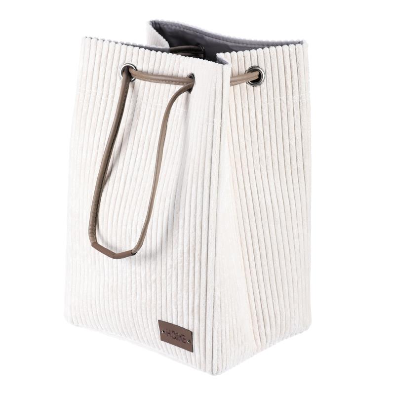Látkový prádelní koš z manšestru v elegantní světle krémové barvě, se stahovacím uzávěrem pro chytré a efektivní ukrytí prádla. Stylový doplněk, který spojuje praktičnost s estetickým vzhledem. V sadě ks: 1 Materiál: Látka Barva primární: Béžová Sezóna: Celorok Šířka (cm): 35.00 Hloubka (cm): 27.00 Výška (cm): 50.00 Hmotnost (g): 510.00 Rozměry: cm Hmotnost:0,6 kg