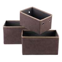Sada tří látkových košů o obdélníkových tvarech a koženkovými povrchy se postará o pořádek stylově a s přehledem. V jemné krémové barvě, s praktickými úchyty po stranách ve tvaru oválných otvorů, se skvěle hodí do regálů, skříní i polic. Různé velikosti umožní systematicky uspořádat drobnosti, oblečení nebo potřeby pro domácnost. Zkrátka všechno, co nechcete hledat každé ráno, a to od ponožek až po kabelky, budete mít pěkně na svém místě a vy už budete hned vědět, kam sáhnout. Rozměry: cm Hmotnost:1,75 kg