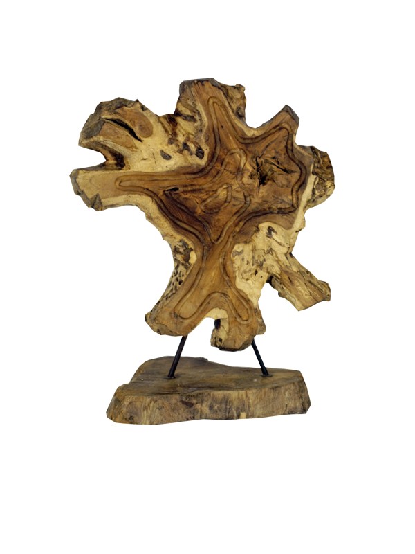 Dřevořezba v abstraktním reliéfním provedení představuje originální dekorativní prvek s výraznou strukturou dřeva a přírodními hnědými odstíny. Reliéf je umístěn na stabilním dřevěném podstavci, který zajišťuje pevnou oporu a umožňuje snadné vystavení na poličce či stole. Povrch dřeva je jemně opracovaný, což zvýrazňuje přirozenou kresbu letokruhů a texturu materiálu. Tento dekorativní objekt vnáší do prostoru přírodní atmosféru a je vhodný pro interiéry s rustikálním i moderním stylem. Rozměry: 40x30x60 cm Hmotnost:5 kg