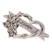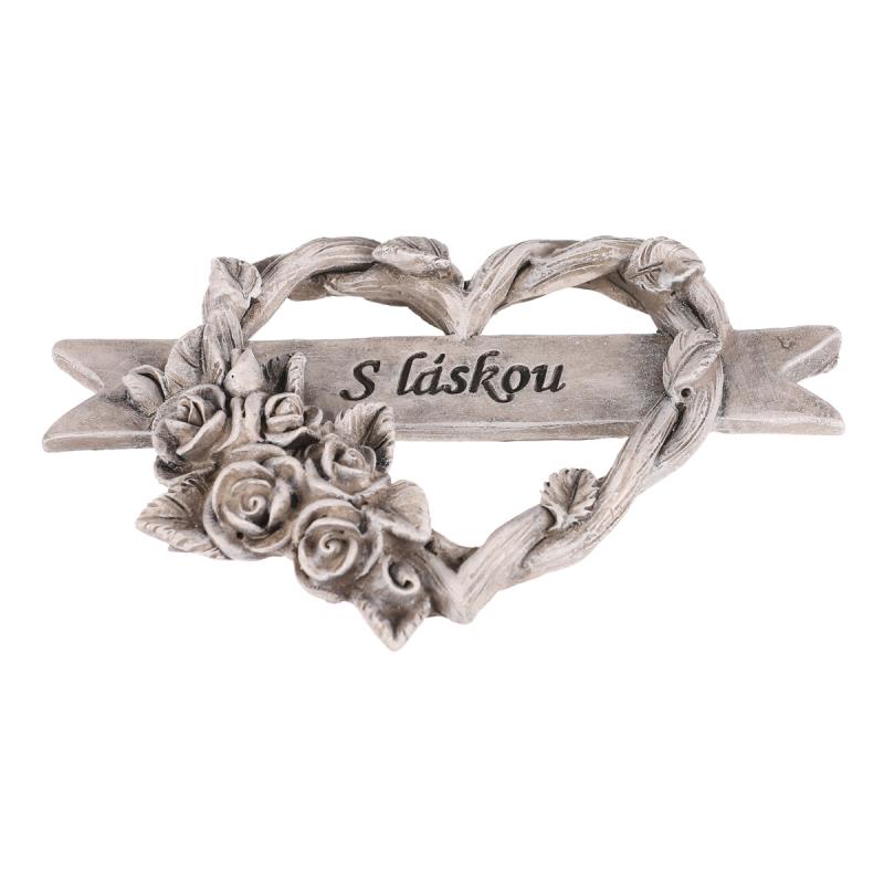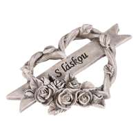 Decentní pietní dekorace v podobě proutí upleteného do tvaru srdce se stuhou a vše doplněné květy růží. Stuha je doplněna nápisem „S láskou“ pro umocnění symbolu úcty a vzpomínky. Šedé provedení a jemné detaily dodávají dekoraci vkusný a důstojný vzhled. Dekorace vyrobena z odolného polyresinu je vhodná pro venkovní pietní a vzpomínková místa. Hmotnost - brutto (kg): 0.00 Objem celkem (m3): 0.00 Hmotnost - netto (kg): 0.04 Barva primární: Šedá Výška (cm): 2.00 Materiál: Polyresin Alternativní sezóna: Celorok Hloubka (cm): 9.00 Šířka (cm): 9.00 Sezóna: Dušičky Tvar: Srdce Hmotnost (g): 41.00 Počet kusů v kartonu: 48.00 Počet kusů v boxu: 8.00 Rozměry: cm Hmotnost:0,06 kg Cena je za 8 kusů.
