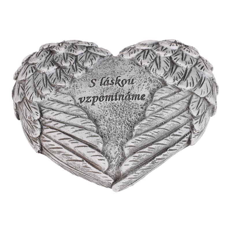 Pietní dekorace ve tvaru srdce s jemně tvarovanými křídly na obou stranách symbolizuje ochranu a věčnou vzpomínku. Uprostřed mezi křídly je nápis „S láskou vzpomínáme“, který vyjadřuje úctu k těm, na které nikdy nezapomeneme. Šedé provedení z polyresinu dodává dekoraci důstojný a neutrální vzhled, vhodný pro taková pietní místa. Hmotnost - brutto (kg): 0.00 Objem celkem (m3): 0.00 Hloubka (cm): 11.00 Hmotnost - netto (kg): 0.19 Barva primární: Šedá Šířka (cm): 13.00 Materiál: Polyresin Alternativní sezóna: Celorok Počet kusů v kartonu: 36.00 Výška (cm): 4.00 Hmotnost (g): 190.00 Sezóna: Dušičky Tvar: Srdce Počet kusů v boxu: 6.00 Rozměry: cm Hmotnost:0,22 kg Cena je za 6 kusů.